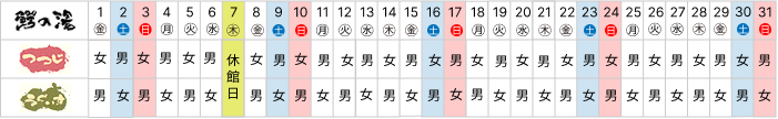 - 「うぐいす」と「つつじ」は日替わりで男女のお風呂を入れ替わります。